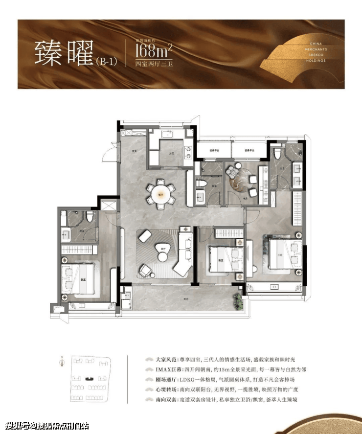 值得关注的是即将亮相的高层新品—— 建面约168㎡,三卫设计,约15米南向面宽,规整的空间格局,几乎没有异形角落。双阳台也是一大巧妙设计,不仅让室内采光和通风达到更佳状态,还区分出生活与休闲的不同天地,三代同堂的居住需求也能从容满足。