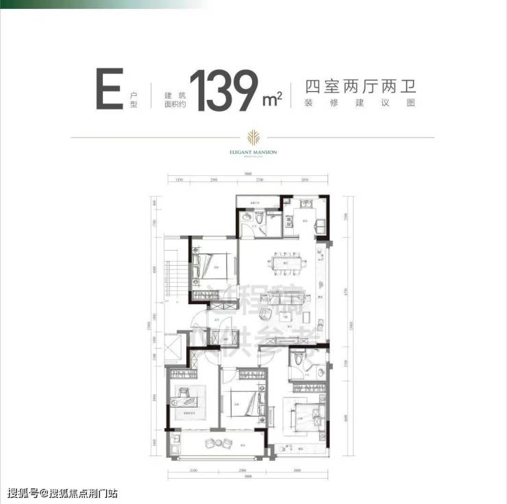 139㎡也是三开间卧室朝南,1个卧室朝北,餐客厅竖向安置,属于当下最优化的大户型设计了。