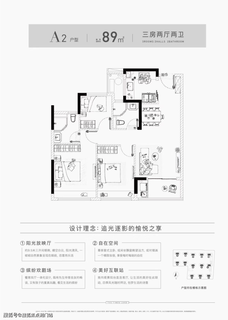 1、建筑面积约89㎡三房两厅两卫