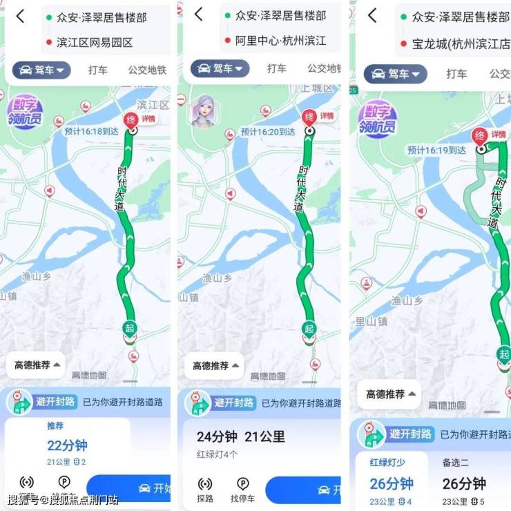 根据地图导航显示,从泽翠居出发,快速到达阿里、网易、宝龙等滨江腹地,繁华触手可及,轻松实现年轻人市中心半小时生活圈的梦想。