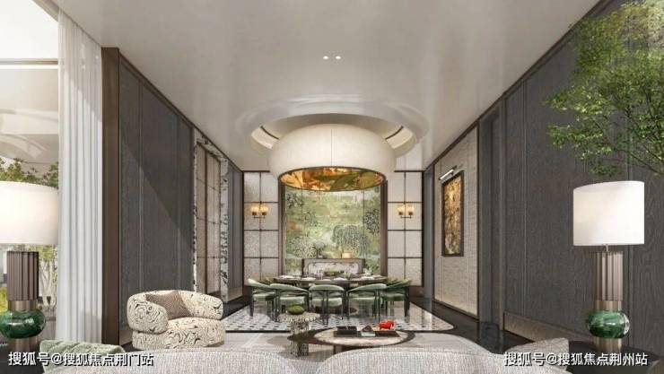 再搭配深色、香槟色的弧形铝板“鎏金华盖”,堪称城北人居的门面担当,铺陈出归家的第一重尊荣。