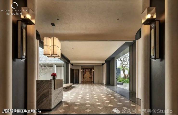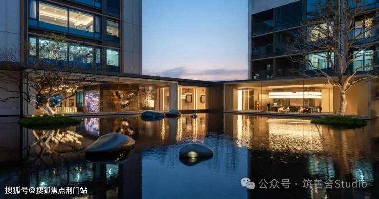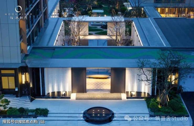 【小区大门】沐新月门头较之前的两个项目作了焕新升级,更显沉稳大气。入门瞬间,目光所及,尽是错落有致、对称排列的悬浮树阵,美感与秩序并存,令人忍不住踏入其中一探究竟。独具匠心的「水上树阵」,其下是一座如镜的水院,清澈见底,映照着天光云影,营造出树影漂浮于空中的奇幻意境。这「漂浮树阵」,与别具一格的门头相得益彰,一步踏入,即刻感受与世隔绝的优雅气质。