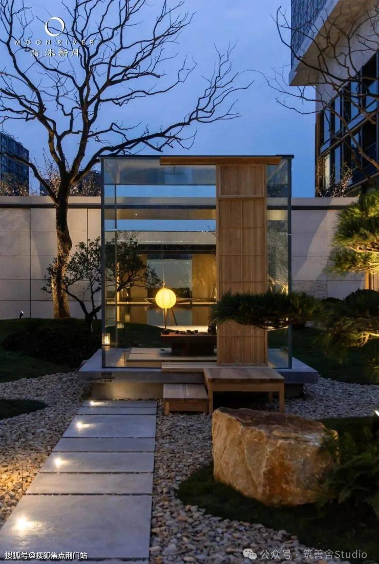 月影婆娑,栖月林中乌桕、日本黑松等珍稀名木错落丛生,从林间幽静直达私家花园,步履间尽显艺术之美;胧月台巧借周边花海密林,于边界匠心独运,打造精致观景台,既可供游赏,又可供沉思,美不胜收。