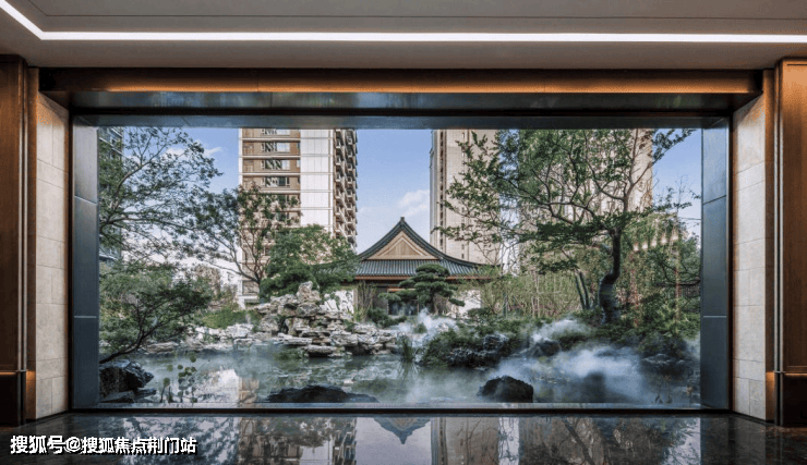 项目以门庭为礼序之始,南、北区各配置磅礴威严国风大门,为每一次回归赋予尊贵仪式感;建筑立面,三面大面积铝板+玻璃、涂料等用材,雕梁画栋国风意境,简约不失华贵;多进式归家园林,汲江南山水、历史源流、人文风物之精髓,绘就东方山水画卷。
