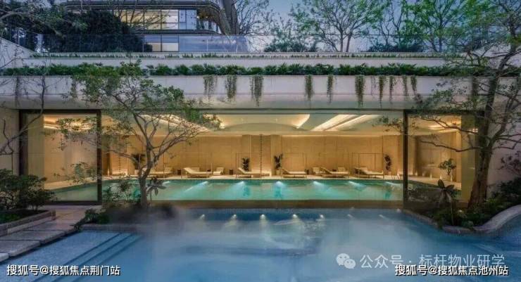 以《红楼梦》中“大观园”为灵感,蕙澜月华打造一座立体叠合的山水园林,通过山水意趣的象征表达与建筑即景的精巧融合,呈现“芥子须弥,小中见大”的东方美学意境。约320米的下沉式庭院,仿若山谷溪涧,营造出“瀑布挂崖间,飞空作碧玉”的壮丽景观;室内恒温泳池与室外嬉水池间,采用可开可合的设计,模糊内外界限,实现自然与建筑的和谐共生。有氧健身空间以“玻璃盒子”的挑空姿态,悬浮于下沉庭院之上,为运动者带来开阔视野。在这里,健身的先生、游泳的太太、嬉戏的孩子,既各享其乐,又共享视线中的陪伴,多维场景的高频互动,诠释了奢华的真谛——不仅是空间,更是情感的交融。