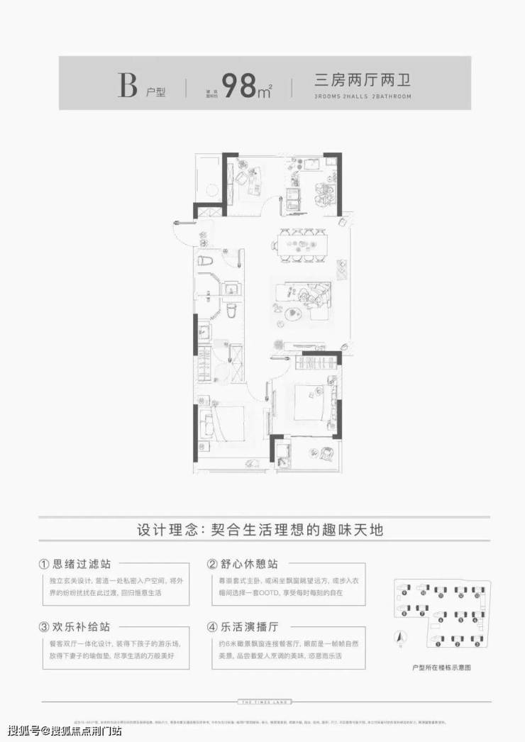 南向三开间约9.5米,足以容纳满室的阳光与清风;主卧同样是套房设计,自带的飘窗上稍加装饰,便可变身为一个独享的看书空间,又或是迷你茶室。客厅直通南向观景阳台,这里可以很生活,也可以很诗意,全看主人心情。98平三房户型均为边套设计,单就占位就秒杀不少2万+、甚至3万+的楼盘。