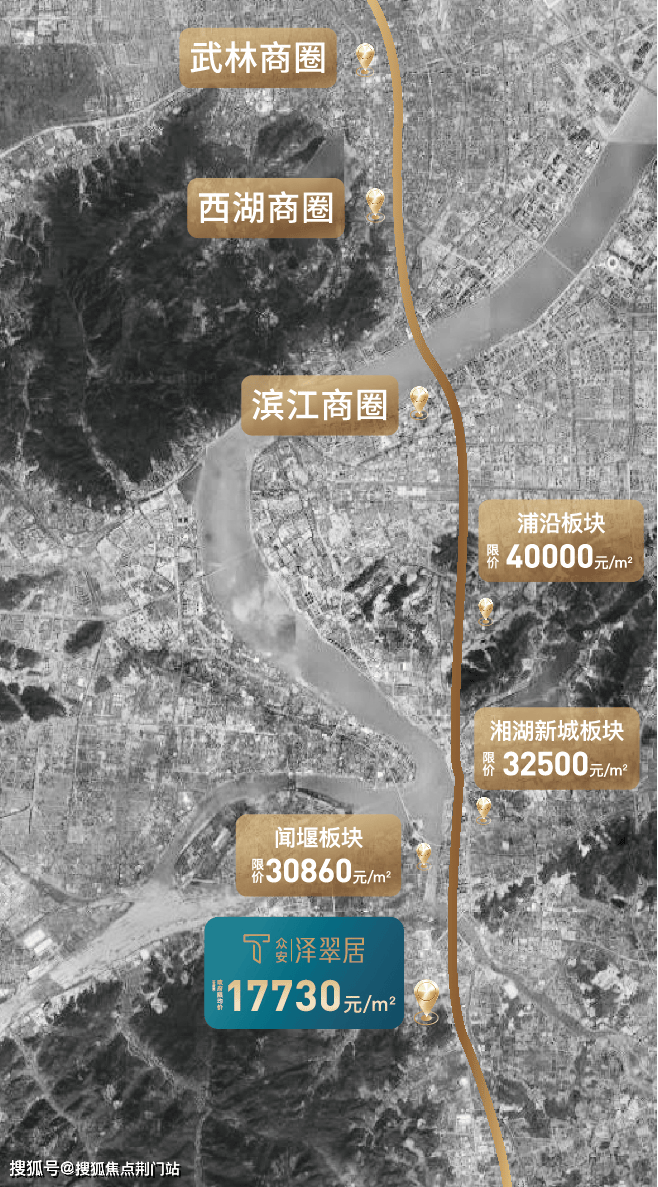 时代大道沿线房价更为直观,新房限价在杭州这条南北大纵轴上实现了「跳水式下滑」。时代大道的北端连接着杭州房价天花板、新房限价接近7万的南星桥,二手房早已迈过10万大关;