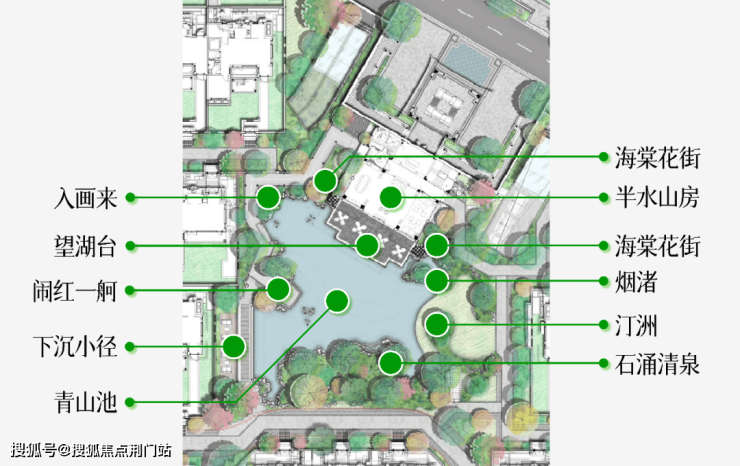 ▲漫延进入合院的湖景,桃李半岛,实景图