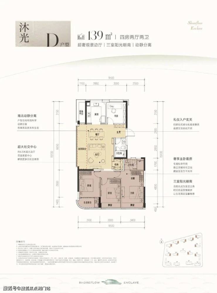 约120㎡B户型做到四开间朝南,约13米南向面宽搭配双联阳台,套房主卧与双飘窗设计营造大平层气场。
