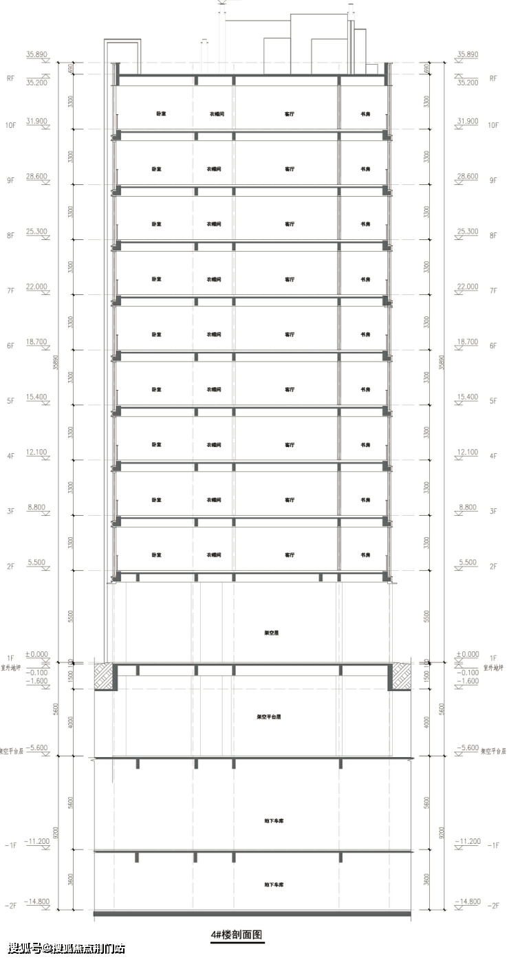 高层层高竟然高达3.3米!架空层5.5米。
