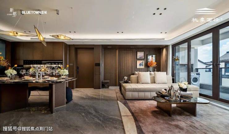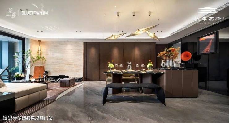 约12.1米南向全景面宽,通过大尺度落地玻璃幕墙,将西径山岚与都市霓虹框成会流动的天然画作,让晨昏晴雨都成为室内的有机陈设。