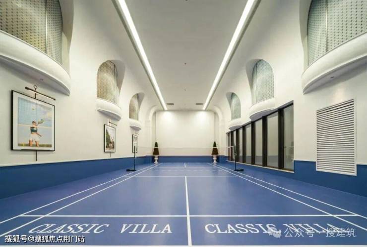 项目还设置有层高约7.9米的多功能球场,业主可以在这里组织匹克球、羽毛球乒乓球等球类活动,墙面采用专业吸音材料,并覆盖亚麻编织饰面,更好地满足运动要求。
