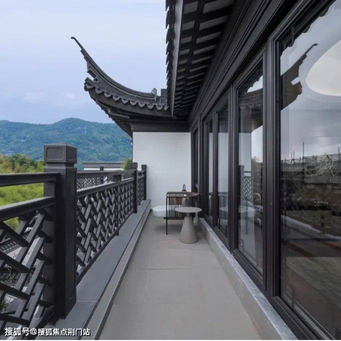 屋檐是屋顶距离人的视线最近的部位,檐口是屋檐的末端。为保留飞檐的灵动,澜院严谨推敲屋面弧度,屋面檐口采用平檐的檐口做法,工艺材质则使用铝代木,在“不可增一分,不可短一毫”的苛刻技法下,描摹中式建筑的柔美曼妙,整个屋顶也更加奢华耐久、现代精致。