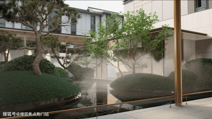 中央景观区域,整个空间以中式“四水归堂”形制打造,寓意聚财纳气,凝聚家族精神。