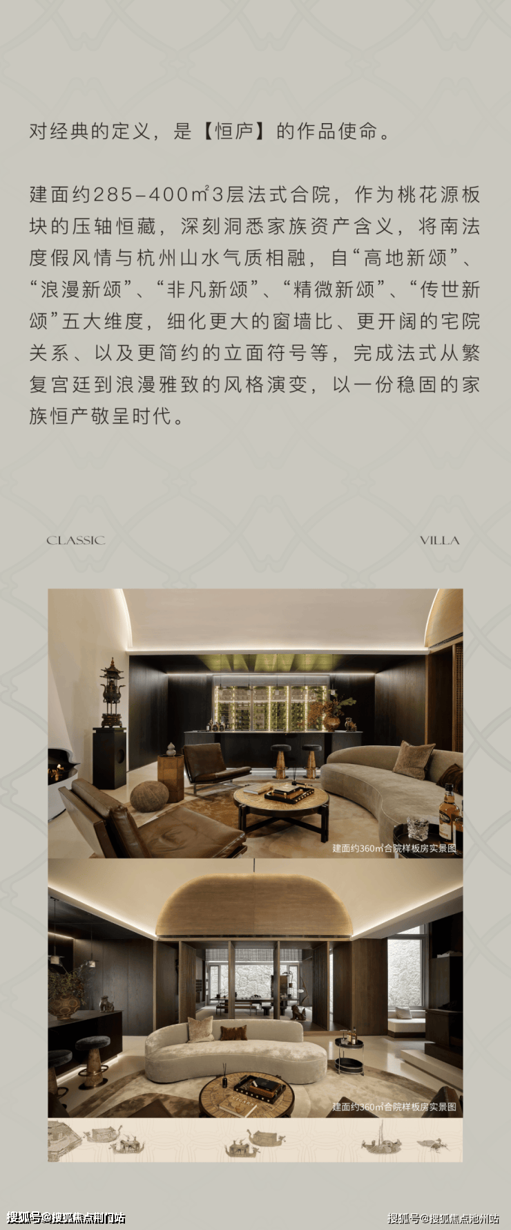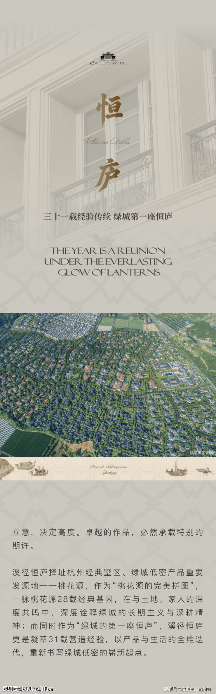 在被绿城定义的桃花源板块,杭州溪径恒庐是绿城低密初心的延续,也是对“日升月恒,亘古不变”的致敬。项目利用土地原有特质与肌理,以一条长约200米的法式柱廊串联两大会所,写意松弛的人生风景。