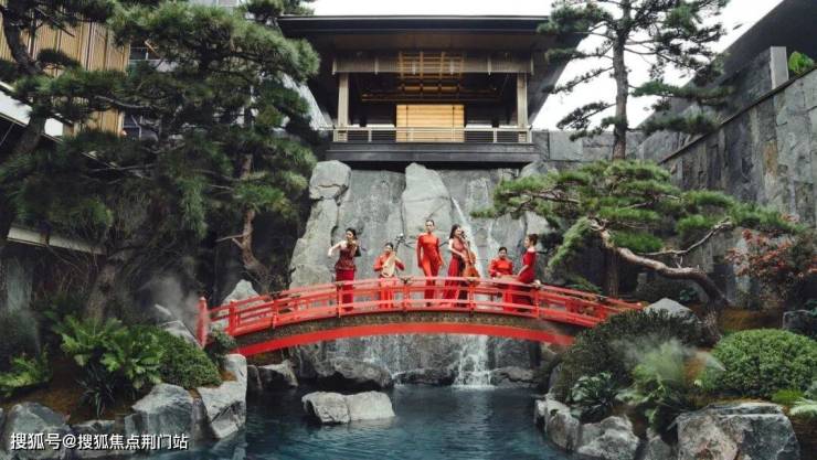 约60米全画幅门庭豁然展开,纳千年风雅于一境。两株超百岁树龄的罗汉松,跨越千里而来,静守世家门楣。金属格栅与天然奢石交织,光影流动间,勾勒出一幅现代东方的诗意长卷——天造一半,人造一半。