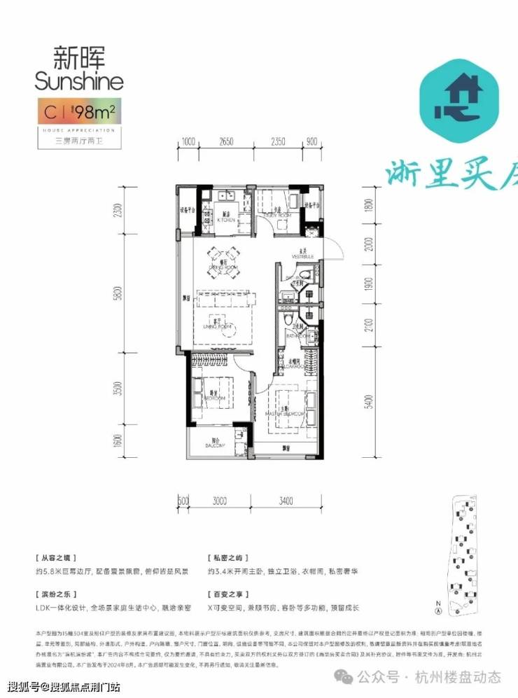 约9.5米大尺度面宽,南向三开间,奢享阳光与风景的自由