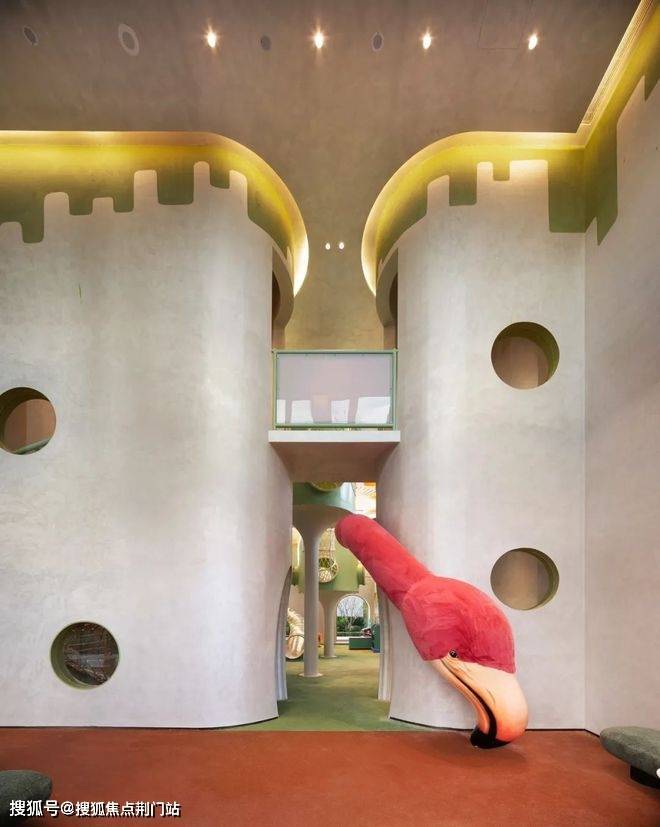 举一个简单例子:比如滑滑梯这一个功能区域,就是绿城把层高拔到约8米,舍弃一套可售房源来实现的。
