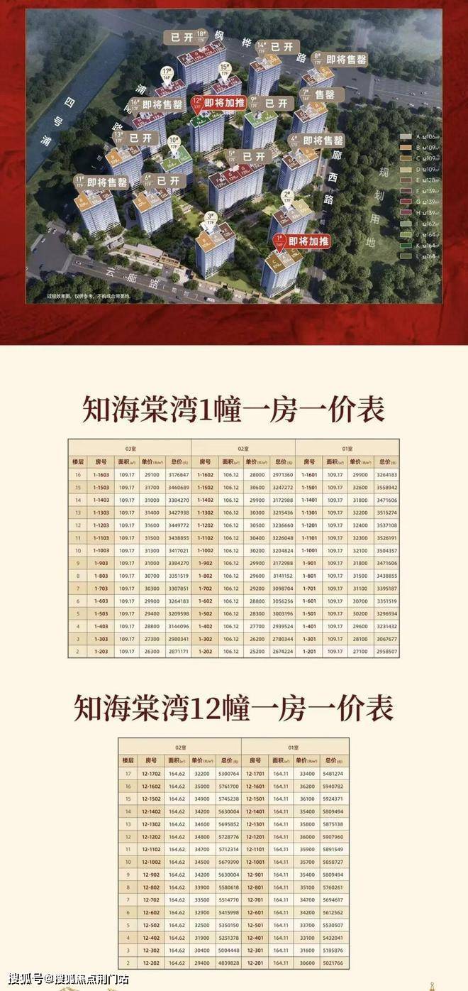 西湖区之江的绿城知海棠3月23日公示最新预售证,加推1#、12#,共2幢77套房源,面积106-109-164方,均价预3.2051万/平。