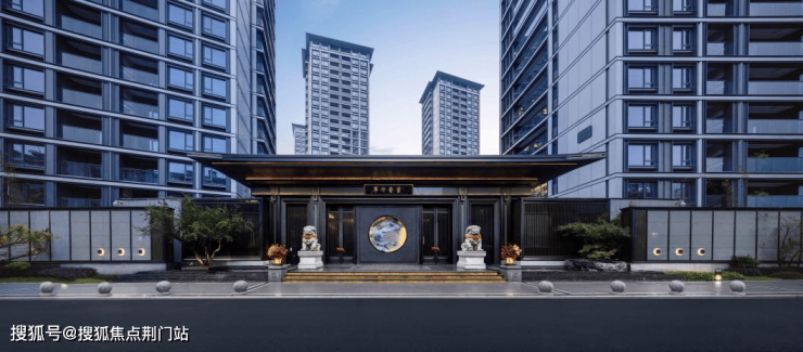项目以门庭为礼序之始,南、北区各配置磅礴威严国风大门,为每一次回归赋予尊贵仪式感;建筑立面,三面大面积铝板+玻璃、涂料等用材,雕梁画栋国风意境,简约不失华贵;多进式归家园林,汲江南山水、历史源流、人文风物之精髓,绘就东方山水画卷。
