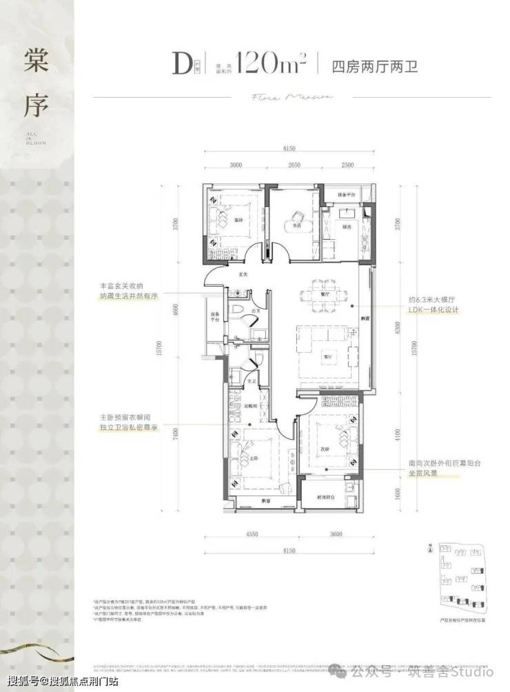 项目总建面约9万方,规划11幢12-16层纯高层,采用"南低北高"的错落布局,建筑限高50米,楼幢间距预计较为开阔,错落式布局,打造了两大主题园林空间。推出建面约99㎡与113㎡精致三居室,以及建面约108㎡、120㎡、128㎡、139㎡宽敞四居室,满足不同家庭需求。
