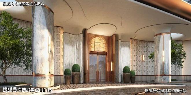 社区入口的设计也别具匠心,以上海前滩华尔道夫酒店为灵感,打造尊荣归家大门,整面弧形石材景墙搭配双层金属屋檐,气场十足。这一设计赋予业主归家过程以隆重的仪式感,彰显社区品质