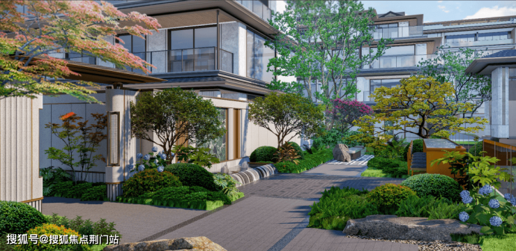 穿过廊桥,景致渐入佳境。曲径回廊、树影婆娑,浅溪沿石阶轻淌,仿佛步入宋代文人“曲水流觞”的雅集现场。巷弄徐徐展开, 一街四巷两弄格局间,既有传统里坊的邻里守望温情,又不失现代社区的疏朗大气。