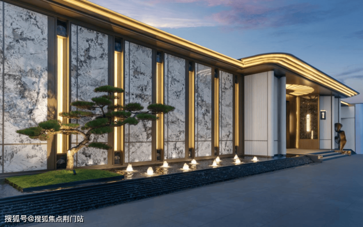 初见,松川境即以一座约80米礼序门庭宣告不凡。特选「百树之王」名贵黑松,约25米叠级水景,磅礴而又奢雅的气场扑面而来。