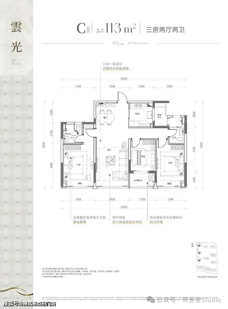 项目总建面约9万方,规划11幢12-16层纯高层,采用"南低北高"的错落布局,建筑限高50米,楼幢间距预计较为开阔,错落式布局,打造了两大主题园林空间。推出建面约99㎡与113㎡精致三居室,以及建面约108㎡、120㎡、128㎡、139㎡宽敞四居室,满足不同家庭需求。