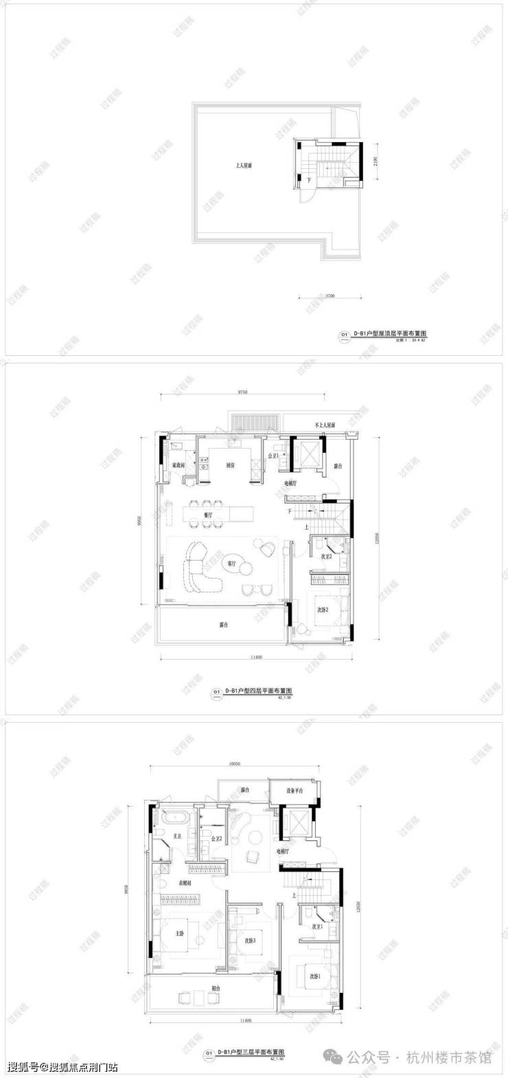 滨江·鸣湖里首发户型约262㎡上叠5室2厅5卫,上下叠实行动静分离,卧室层位于三层,双套房设计,主卧带衣帽间和阳台;餐客厅层位于四层,并带一个次卧套房,南向带大露台;屋顶层为大露台空间。