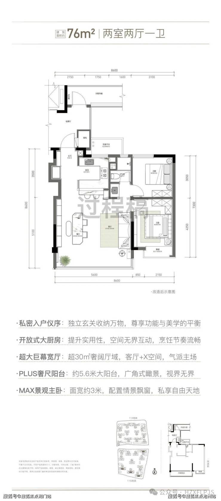 断货76㎡灵动三房,超30㎡奢阔厅域,客厅+X空间,约5.6米大阳台,阔享奢尺三房;