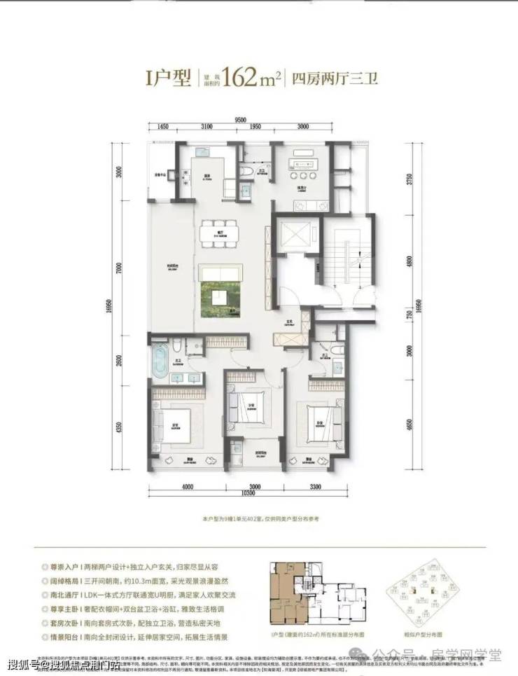 约2.4米“流光礼宾” 塔冠如悬浮的美学灯塔,与金色挑檐相映成辉。全封闭式阳台勾勒建筑轮廓,让立面如镜幕般收纳约30公里江岸鎏光。
