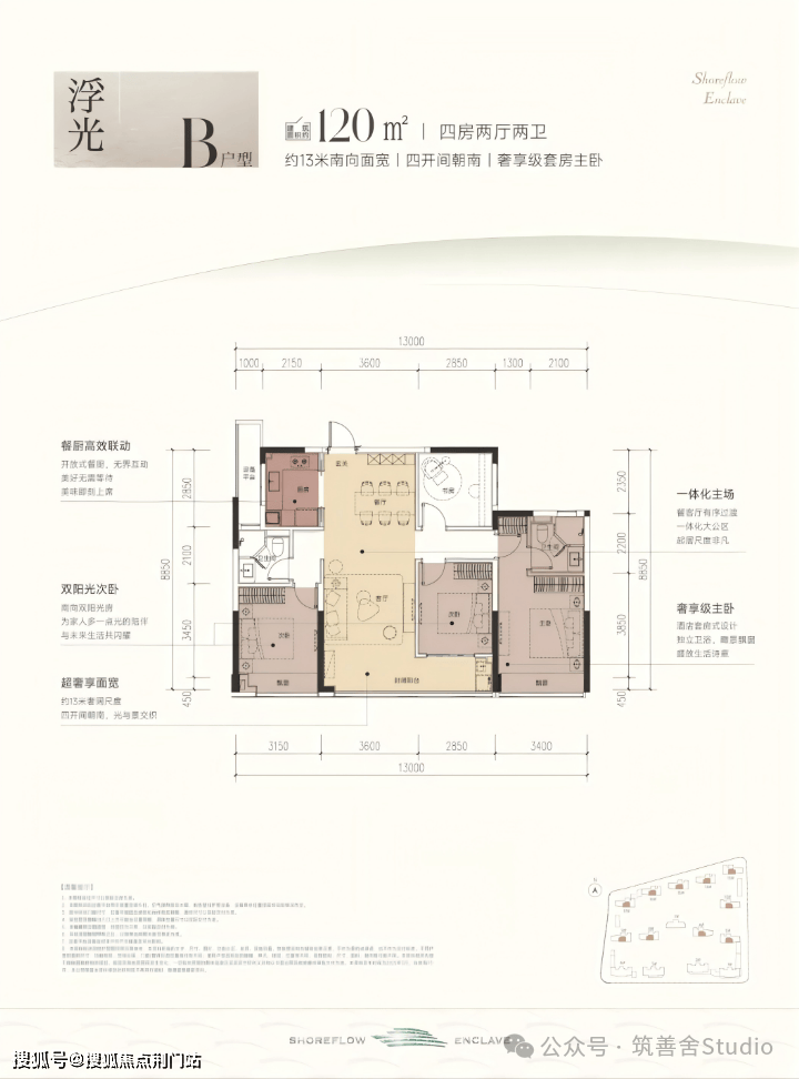 二、建面约120方四房两厅两卫: