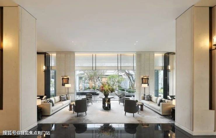 绿城·湖映金沙公区设计以触摸现代生活之韵,融合当代摩登之奢,以独特的“海派美学”开启一次重塑空间的迭新之旅。或隐或显,与城市繁盛之地,达成与大湖的对话语境。