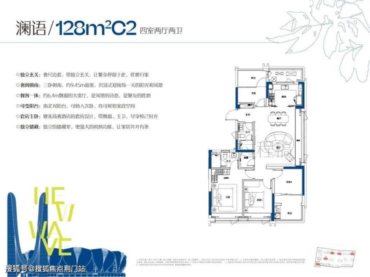 此外,还有两款紧凑却舒适的四房户型。约120方,是稀缺低总价边套四房,低总价完成改善;约128方四房,每个房间的最小面宽约3米,彻底告别「书房冒充卧室」的年代,相比以往同面积段,舒适度大幅提升;