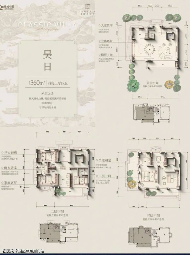 叠排产品遵循“现代形、东方意”内涵,低密产品,最主要追求的就是“有天有地,有私密感”,所以附加值的打造,变得尤其重要。所以,我们先讲的是附加值。建筑面积约235~300㎡四层庐系叠墅,