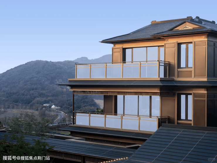 建筑立面:古今交融的诗意表达:外立面以香槟金铝板为基调,搭配蓝眼睛石材与玻璃幕墙,融合传统歇山重檐、纳福悬鱼等元素,既保留宋式建筑的对称美学,又赋予现代建筑的轻盈通透。合院组团采用三面庭院设计,L型景观面与环绕式檐廊,将超山梅影、丁山湖光引入每一扇窗景!