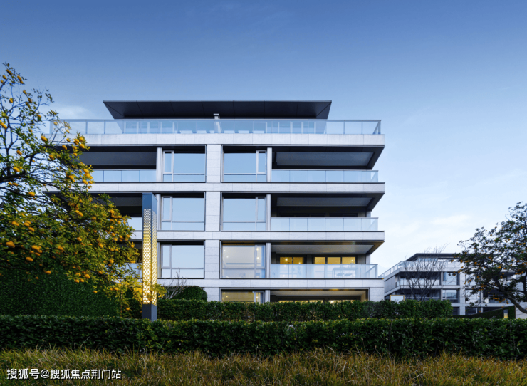 建筑外立面,四面皆为石材干挂,搭配铝板和大面积玻璃,窗墙比也高达60%,既标定了豪宅底色,更如同时装T台上的classic style,经典永不过时。