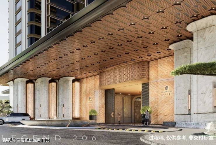 而在立面细节处,项目亦取法极致:通过“金玉”锻造理念勾勒精致而经典的视觉感官,形成“琢石如琢玉”、“冶金如錾金”的工艺模式。
