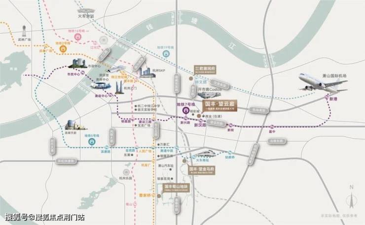 此外,项目还紧靠建设四路,速连滨江和萧山主城,到萧山区政府的直线距离不过约4.5km,离机场高速和通城高架仅约1.8km。无论是杭州主城的繁华盛世,还是钱塘江时代的城市封面,或是国际盛会聚集的丰盈舞台,都是国丰·望云庭的未来主场。