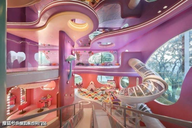 这才有了净高约6米高的童玩区,高耸的树屋,以及盘旋而下的超级滑梯,几乎将一整个“奈尔宝”搬回家。