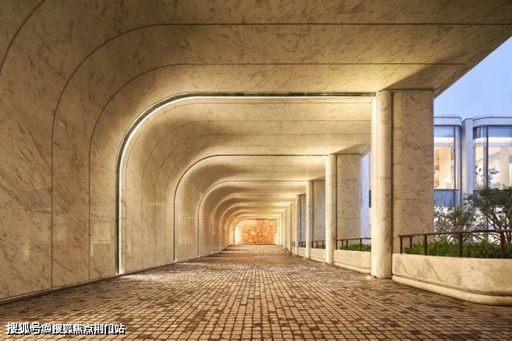 每户电梯口装修的同样考究,地面的拼花,头顶的圆弧形吊顶。将来业主只要置一餐桌,就能达到排屋、叠排才有的那种露台聚餐氛围。或者用来养花种草、下棋看书,也都是好去处,生活的乐趣翻倍。