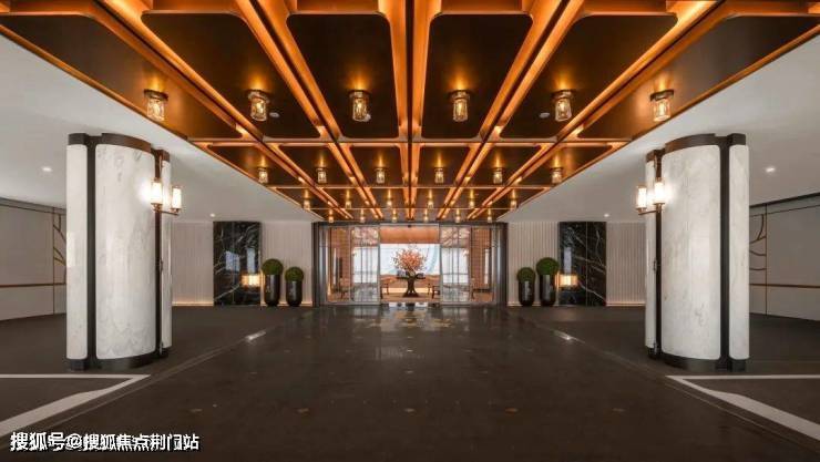将来步行归家有黑松迎宾、挑高约9米的奢石大门,车行归家则穿越光厅车马院,光影浮动间,东西两线汇于一座挑高归家大堂。