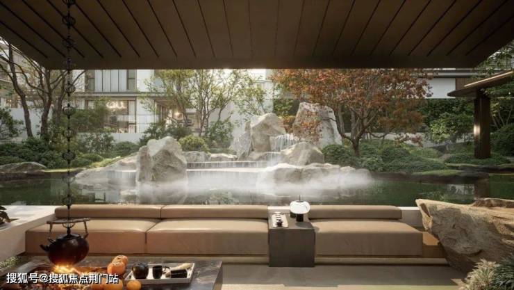 整座庭院采用了市面上非常少见的三层观景式设计,你可以找到不同的观景台,沉浸感受这座空山幽谷的立体山水画境。