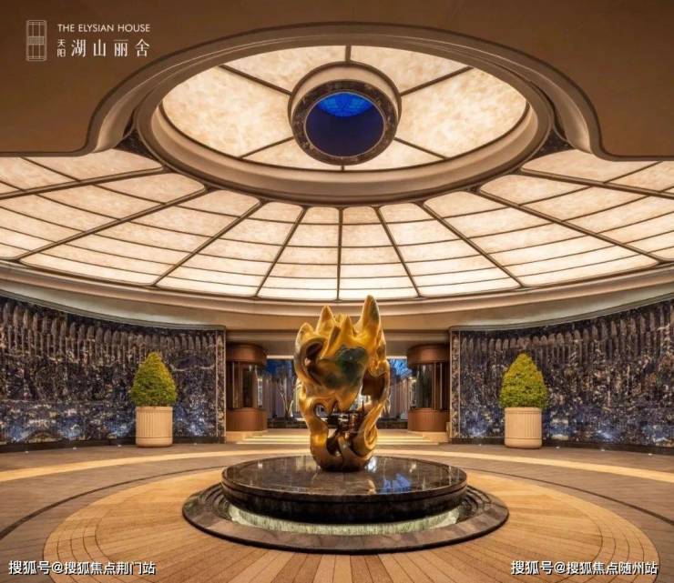 映入眼帘的是「帷幕玉廊」,搭配多重帷幕的门廊造型,叠加「天穹光庭」采用内凹环抱弧形墙面,上方穹顶形制,共筑酒店式环岛落客区,散发着尊崇的归家气场。