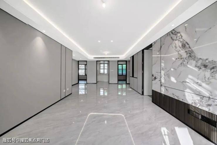 客厅双面背景墙:现在很多项目,连电视机背景墙都不做的情况下,翠栖府出人意料地做到“双背景墙”——电视机背景墙+沙发背景墙,开创“双背景墙”时代,其中电视机背景墙是大片岩板上墙,而沙发背景墙则是硬包的形式。提的一说的还有,主卧的背景墙,翠栖府这次也是“交付标准”。