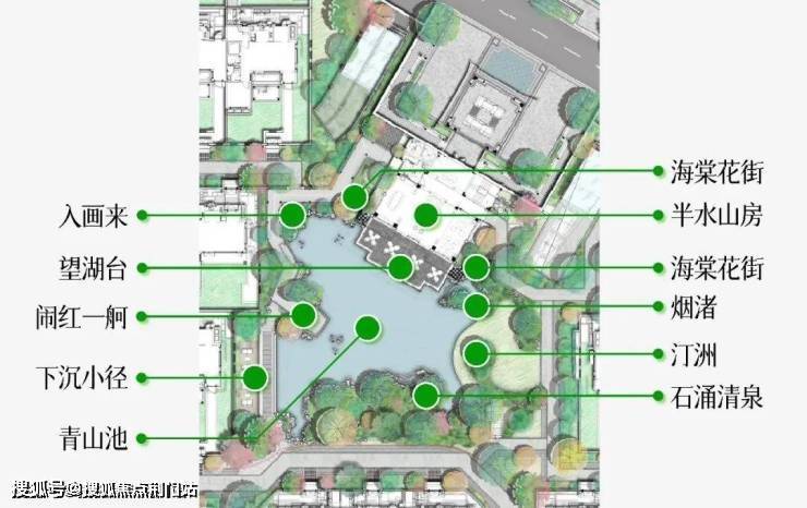 项目的园林,借鉴了苏州拙政园、东京旧芝离宫等的造园灵感,并糅合九溪烟树、西溪湿地等,形成「一溪两园三十景」把韵味悠长的诗境,在项目中再现。