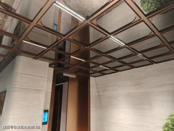 主入口大门高度达到了约7米,置身其中,尊贵气派。选用贝金米黄石材、维多利亚绿与白雪公主奢石,搭配古铜色金属板,巧妙融合冷暖色调,营造出极具张力的美学效果。