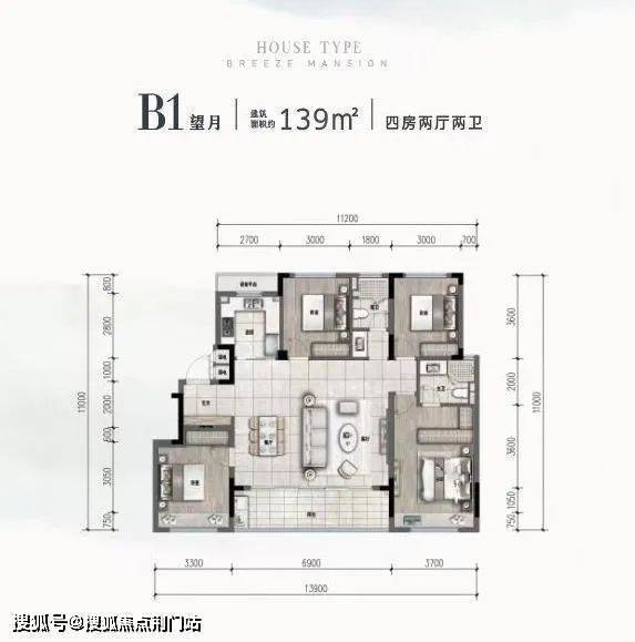 建筑面积约139方四室两厅两卫,得房率高达95%(含赠送面积),实际得房面积超过很多高层的150方。