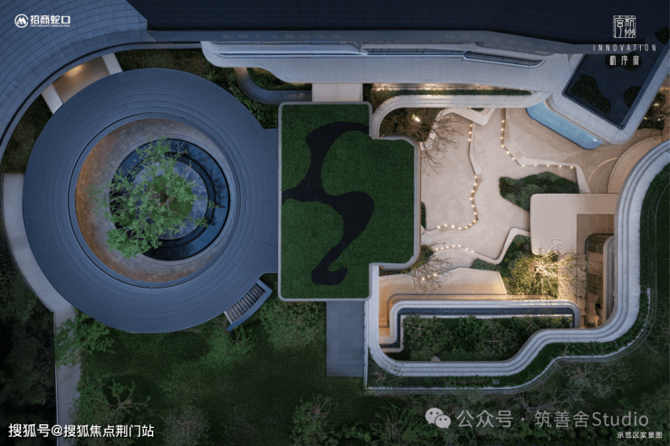 架空层精心打造,携手西泠印社,以书吧、休闲区、会议室为核心文化载体。特色拱圈长廊巧妙连接两侧空间,墙面装饰或为实用书架,或为璀璨发光的石材,亦或为营造度假气息的精致格栅,营造出多元化的空间体验。同时,注重屋顶与地面软装的和谐搭配,提升整体空间美感和舒适度。